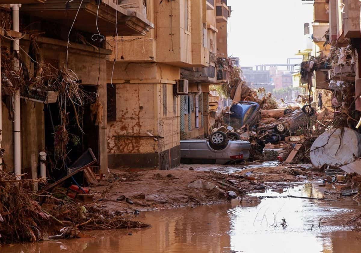 وجرفت مياه ارتفاعها حوالي 7 أمتار مدينة درنة الليبية، كما جرفت صفوفاً كاملة من البيوت وقلبتها رأساً على عقب في كارثة هي الأكبر من نوعها جراء انهيار سدين جراء هطول أمطار شديد الغزارة وإهمال السدين من قبل السلطات الليبية المسؤولة.