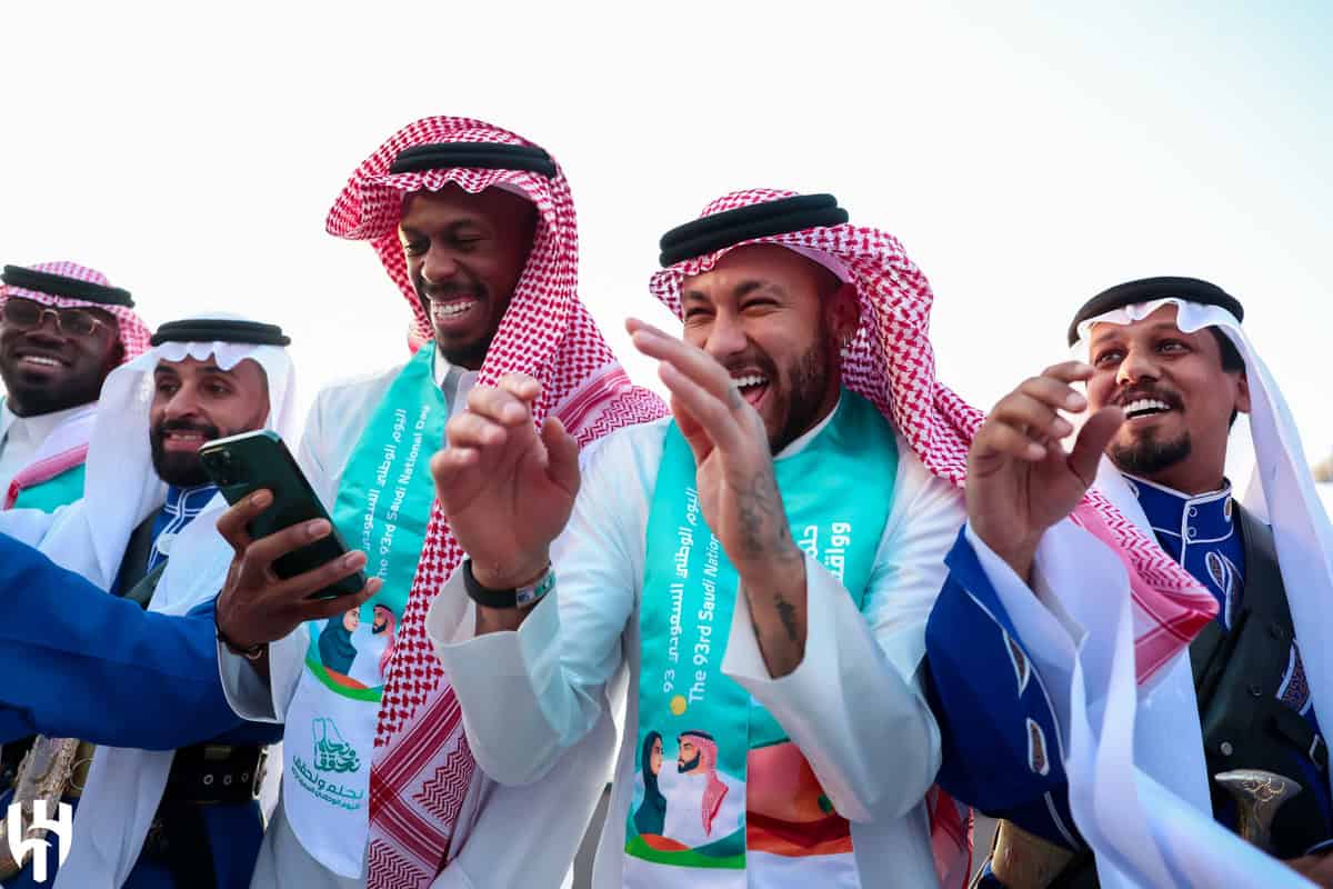 وطن– لم يفوت لاعب كرة القدم البرازيلي، نيمار جونيور، فرصة مشاركة السعوديين، بالاحتفال في اليوم الوطني السعودي الـ93 برفقة لاعبي نادي الهلال.