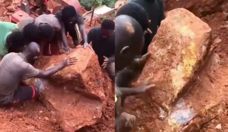 وفي مقطع فيديو منتشر على tiktok، يمكن رؤية مجموعة من حوالي ستة شبان يحاولون دفع الكتلة إلى أعلى حفرة التعدين.