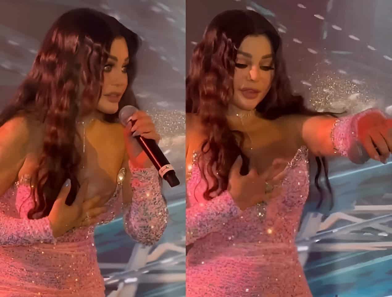 وأثناء غناءها بحفلتها في المكسيك، سقط فستان هيفاء وهبي، ما كاد يكشف صدرها تماماً، لكنها تداركت الأمر وأمسكته بيدها.