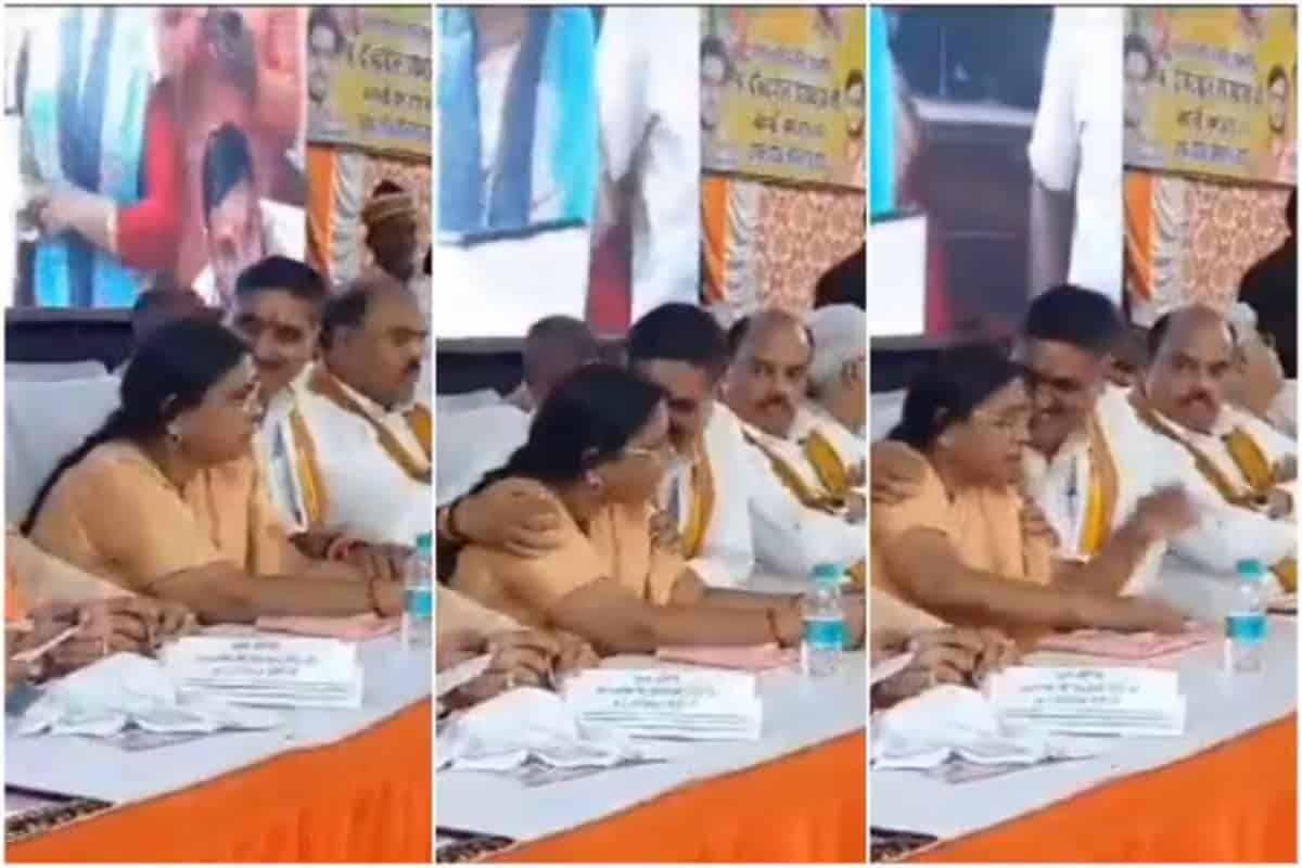 أظهر الفيديو ساتيش غوتام وهو يضع يديه على أكتاف وظهر موكتا راجا، التي يمكن رؤيتها بوضوح وهي تشعر بعدم الارتياح من تصرفات النائب.