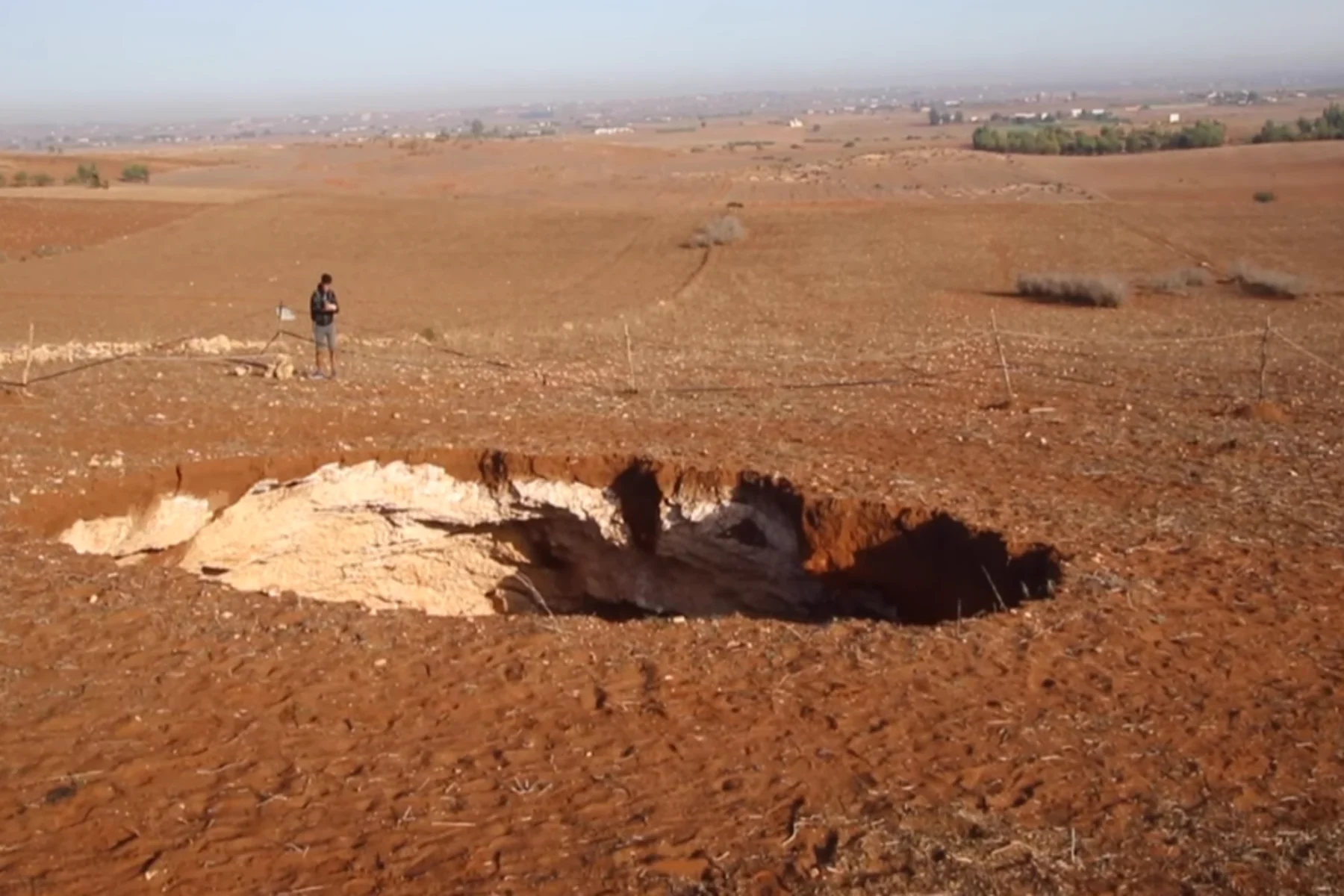 وأظهر لقطات مصورة تم تداولها بشكل واسع عبر منصات التواصل الحفرة المرعبة التي وجدت في أرض زراعية والتي بحسب ما نقلته صحيفة هسبريس المحلية يبلغ عمقها 60 متراً وقطرها 20 متراً.