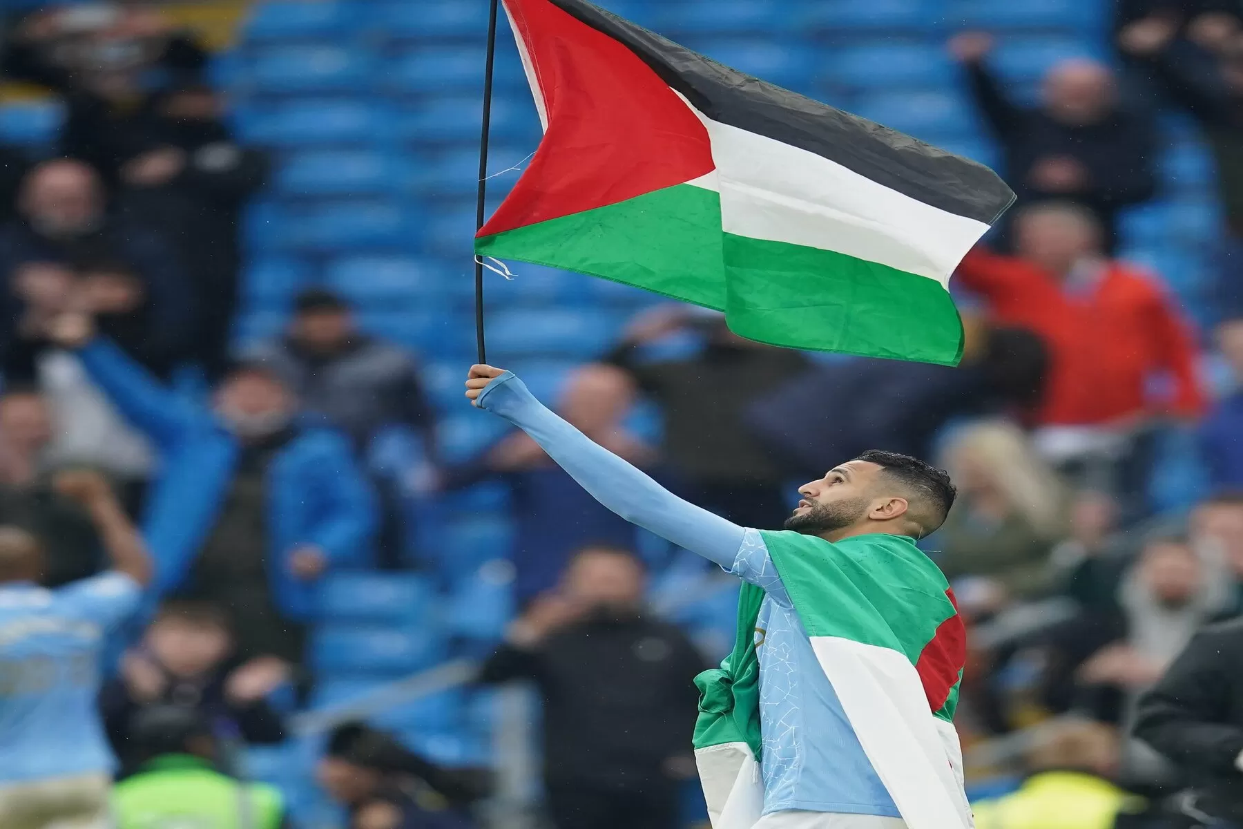 وكان النجم الجزائري رياض محرز، رفع علم فلسطين إلى جانب العلم الجزائري، خلال احتفالاته مع رفاقه في مانشستر سيتي برفع درع الدوري الإنجليزي الممتاز في أيار 2021.