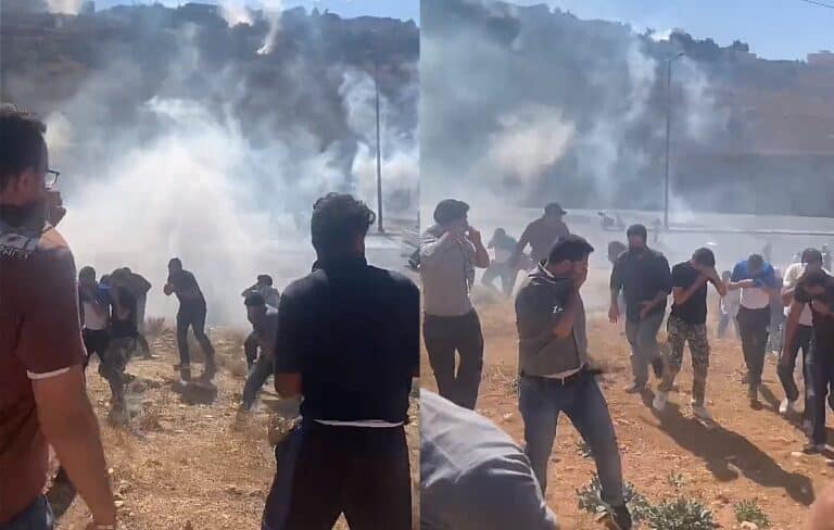 وأظهرت اللقطات، التي تنفرد “وطن” بنشرها، الأمن الأردني وهو يقمع المتظاهرين باستخدام قنابل الغازات المسيلة للدموع قرب جسر الشونة الحدودي المحاذي لفلسطين.