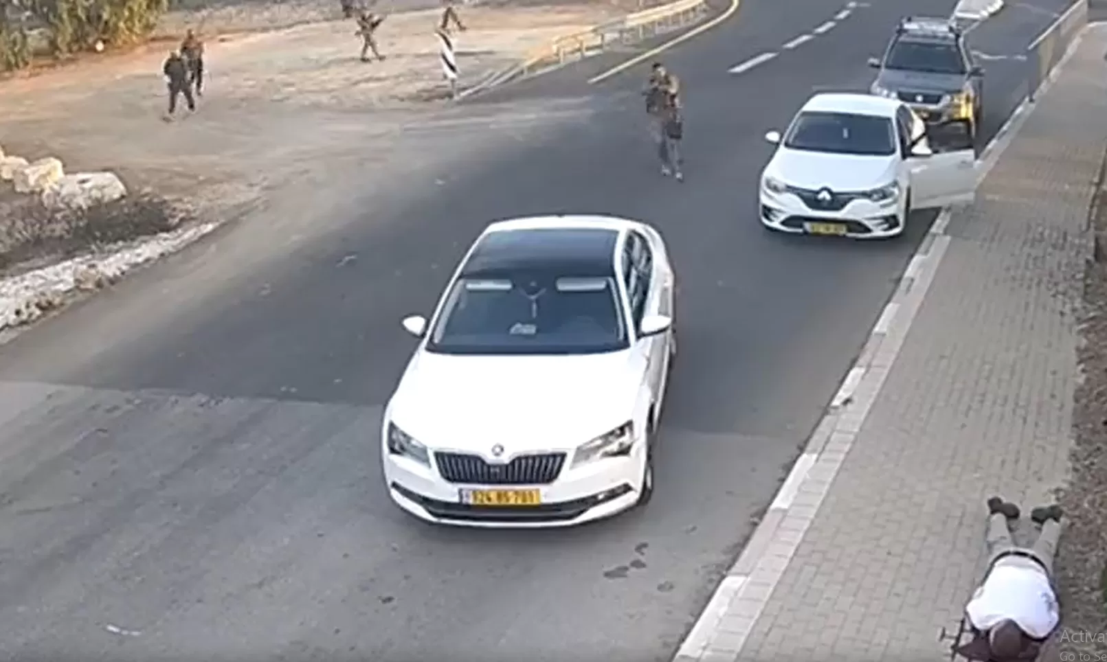 أظهر مقطع الفيديو المتداول الضابط الإسرائيلي وهو يركض على رصيف إلى جانب عدد من السيارات في الشارع