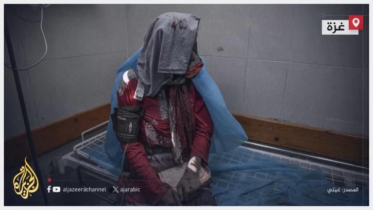 امرأة فلسطينية تحتضن القرآن الكريم أثناء تلقيها العلاج الطبي بعد إصابتها وانتشالها من تحت الأنقاض