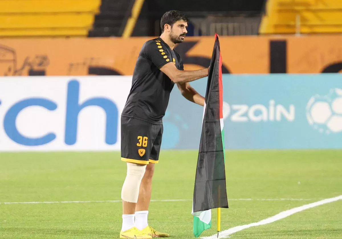ونشر نادي القادسية الكويتي عبر حسابه الرسمي على منصة (X)، مقطع فيديو يظهر فيه قائد فريق القاسية خالد إبراهيم، وهو يرفع العلم الفلسطيني خلال دخوله أرضيه ملعب ” ستاد محمد الحمد”، ووضع العلم وتثبيته داخل منتصف ملعب المباراة.
