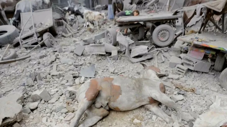 وبينت اللقطات العديد من المنازل المدمرة بالكامل، فضلًا عن تدمير مسجد في المكان، بجانب تضرر عدد من العربات والسيارات.
