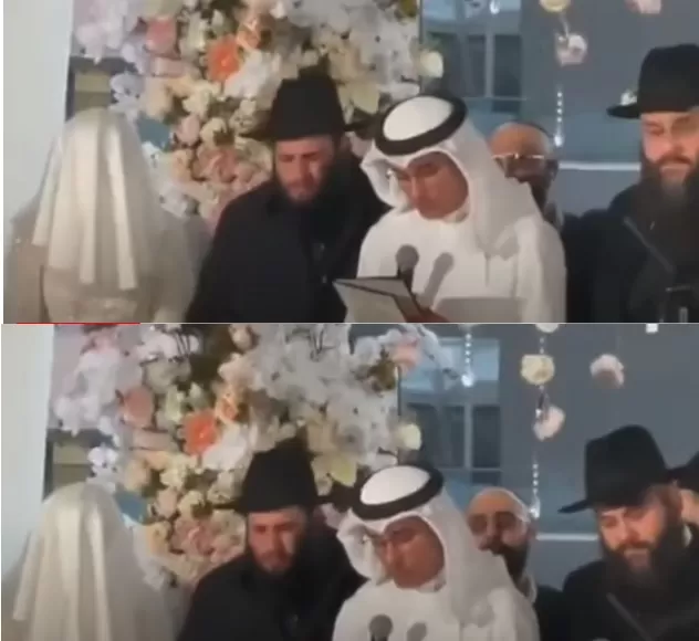 مقطع الفيديو الذي حقق رواجا كبيرا يُظهر عروس بفستان أبيض مغطاة الرأس، وبجانبها رجل بزي ديني يهودي، وآخر بزي خليجي تقليديّ يلقي كلمة يثني فيها على حكام الإمارات.