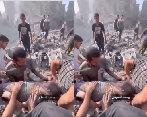 لقطات تبكي الحجر لطفلة فلسطينية تبحث عن والدها الشهيد بعد غارات الفجر