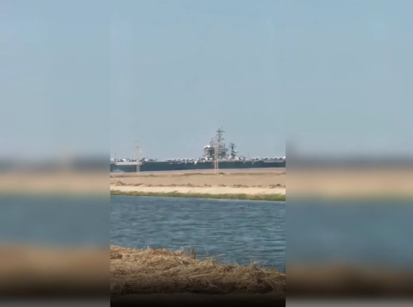 وطن – وثق مقطع فيديو تم تداوله على مواقع التواصل الاجتماعي مرور حاملة طائرات من قناة السويس، فيما ذكر متداولوا المقطع أنها حـاملة طائرات أمريكية في طريقها إلى سواحل غزة.