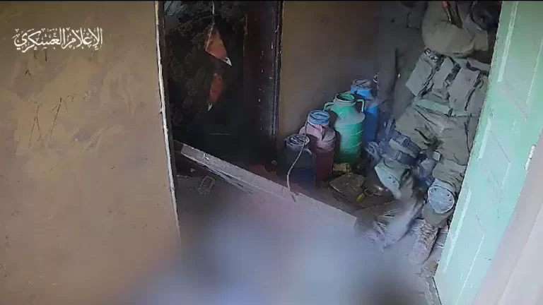 وبدا في مشهد تال لحظة دخول جنود الاحتلال للفخ الذي نصبه عناصر القسام في فتحة النفق، وظهرت القوة الإسرائيلية تتفقد المكان قبل أن يضع جندي إسرائيلي يده على كاميرا أعلى النفق وثقت المشهد.