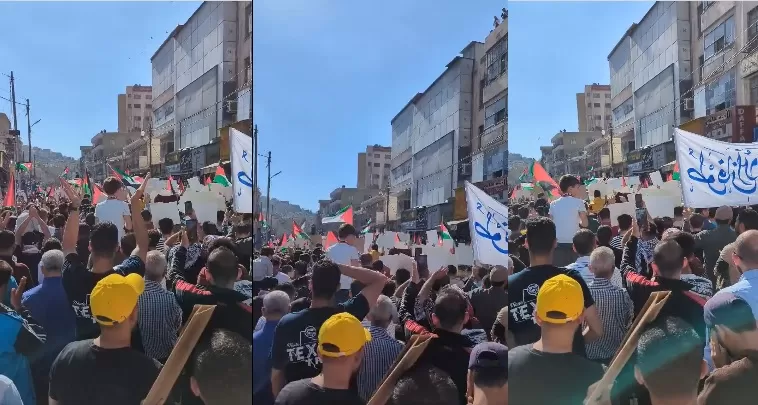 ومن بين الهتافات التي ردّدها المتظاهرون في الأردن “قالوا حماس إرهابية .. كل العالم حمساوية”، وهتافات أخرى داعمة للمقاومة ومندّدة بمجازر الاحتلال الإسرائيلي في غزة.