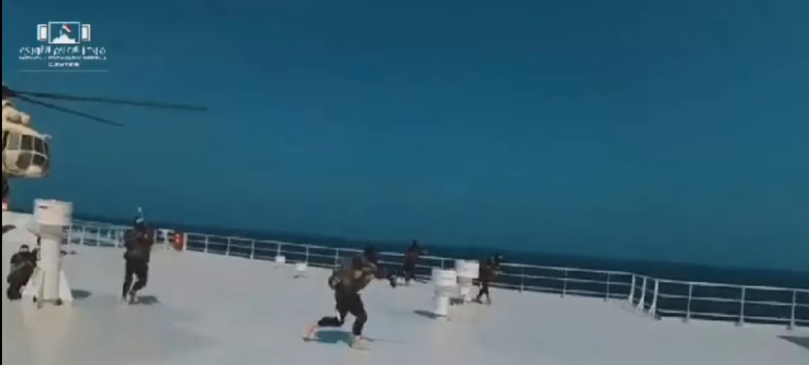 وأظهرت المشاهد، هبوط مروحية على سطح السفينة، ونزول عدد من مقاتلي الجماعة المسلحين من المروحية، لينفذوا عملية انتشار في السفينة، ثم اقتحموا غرفة قيادتها دون أي مقاومة من طاقم السفينة.