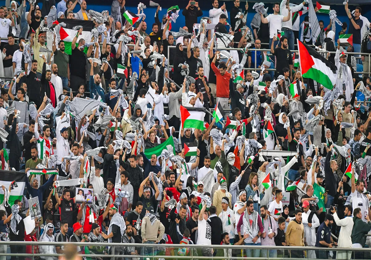 وطن- هتفت جماهير المساندة للمنتخب الفدائي الفلسطيني داخل المدرجات، خلال مباراتهم أمام أستراليا، في تصفيات مونديال كأس العالم 2026 وكأس أمم آسيا، تضامناً مع الشعب الفلسطيني الذي يتعرض لحرب إسرائيلية هي الأعنف على قطاع غزة.