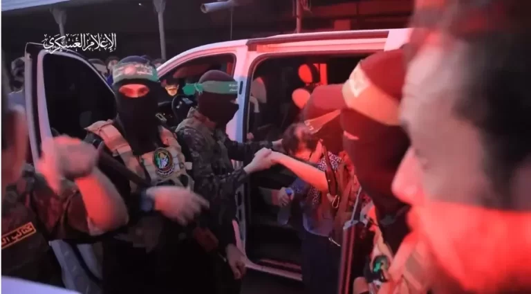 وطن – نشرت كتائب القسام الجناح العسكري لحركة حماس، مشاهد من تسليم الدفعة الأولى من الأسرى الإسرائيليين في قطاع غزة ضمن اتفاق الهدنة الإنسانية، وللإفراج عن الأسرى الأطفال والأسيرات الفلسطينيات من سجون الاحتلال وفق الصفقة المتفق عليها.