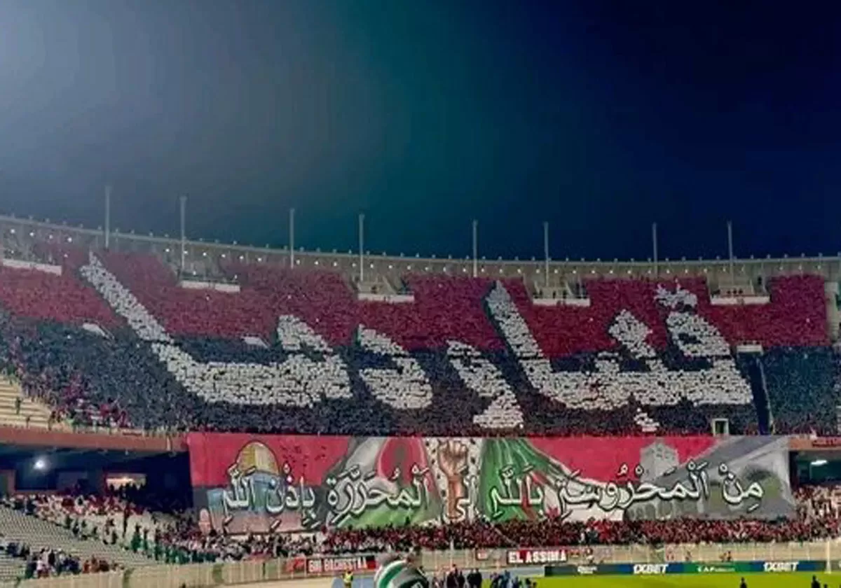 وطن- عبر فريق اتحاد العاصمة الجزائري عن تضامنه مع فلسطين، من خلال رفع تيفو تاريخي من قبل أنصاره داخل مدرجات الملعب، نتيجة الحرب الإسرائيلية على قطاع غزة.
