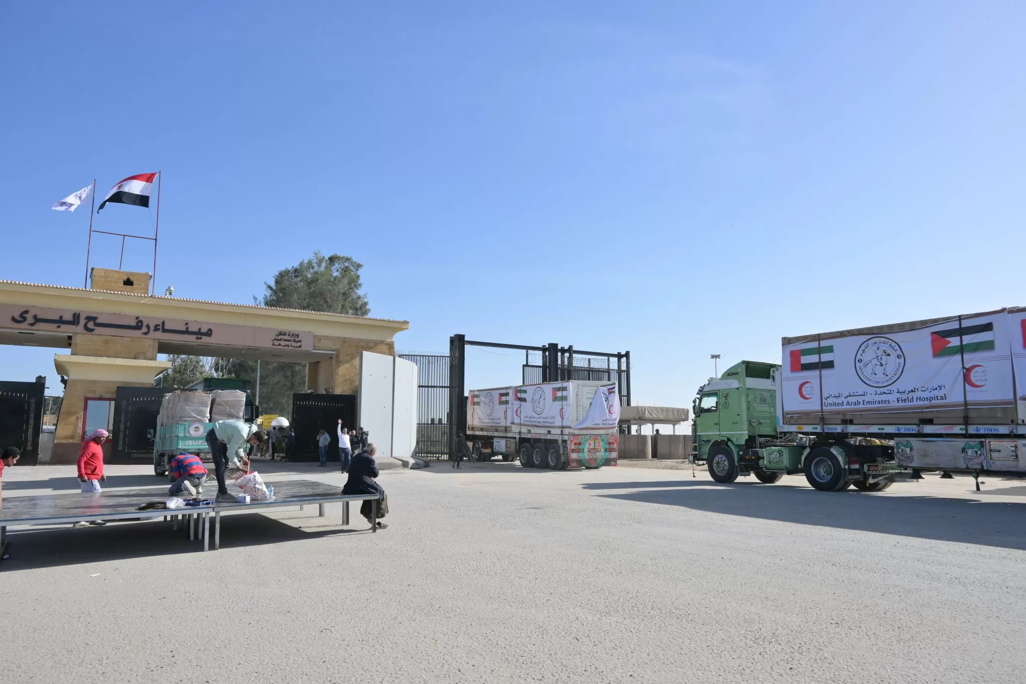 وبحسب موقع إماراتي ليكس، فقد جرت عملية تنسيق بين أبو ظبي وتل أبيب لبناء المستشفى الميداني الإماراتي في مجمع الاستاد بمدينة رفح، جنوبي قطاع غزة.