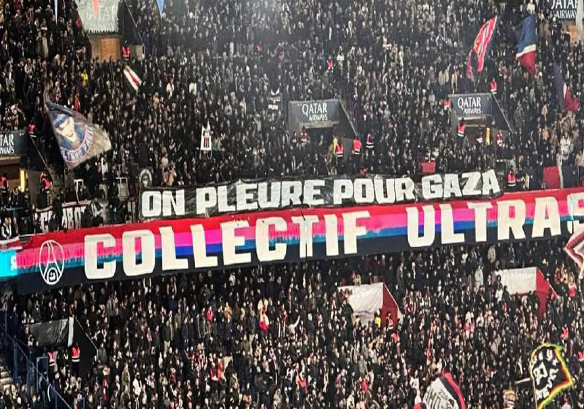 “نبكي من أجل غزة” .. ألتراس باريس سان جيرمان يتضامن مع فلسطين بلافتةٍ ضخمة في دوري أبطال أوروبا (صور)