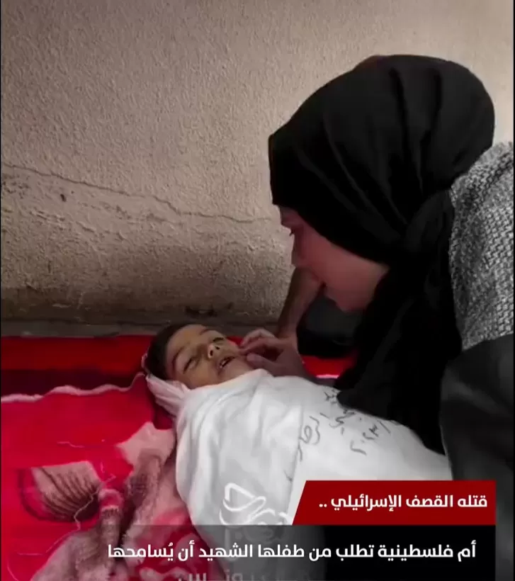 أحد هذه المشاهد لخّص حجم الوجع الفلسطيني، ويعود لسيدة جلست أمام جثمان طفلها الشهيد، وطلبت منه أن يسامحها.