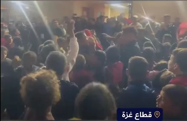 وردّد الأطفال في هذا المشهد المؤثر هتاف “بدنا هدنة”، وسط تفاعل كبير من قِبل الموجودين في المكان.