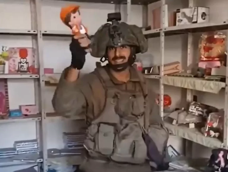 جندي إسرائيلي يتباهى بتحطيم محل ألعاب في غزة