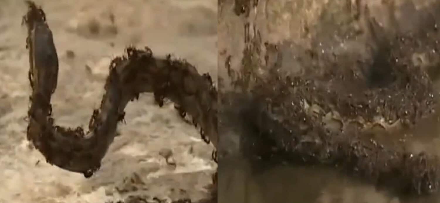 في الفيديو، تظهر الأفعى وهي تدخل عش النمل، وسرعان ما تبدأ مستعمرة النمل في الهجوم عليها، حيث يتسللون إلى جسدها ويهاجمون أعضائها الداخلية.