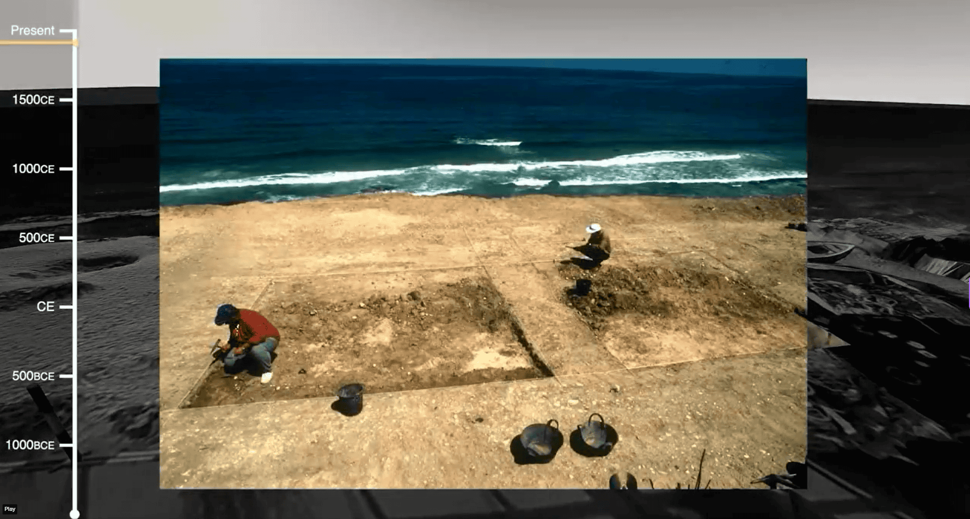 وقالت شركة Forensic Architecture إن الموقع تم التنقيب فيه بين عامي 1995 و2005، ومن بين العناصر التي تم اكتشافها كان هناك سور من العصر الحديدي أسفل منازل من العصر الأخميني، وهياكل من العصر الروماني والهلنستي بما في ذلك مركز تجاري، ونافورة مبلطة على الساحل، ومقبرة بيزنطية في الشمال.