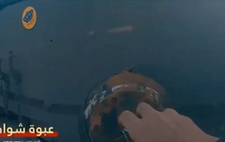 وبدا في مشهد تال أحد المجاهدين داخل نفق قرب دبابة رابضة بجانب سياج أسمنتي، ويتم تحديدها كهدف بالمثلث الأحمر المقلوب.