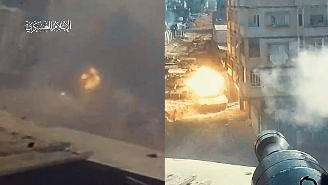 وفي مشهد تال يظهر مقاتل من نفق ويقوم بتسديد قذيفة على دبابة بدت رابضة أعلى تلة ترابية فيحيلها إلى مصير سابقتيها.