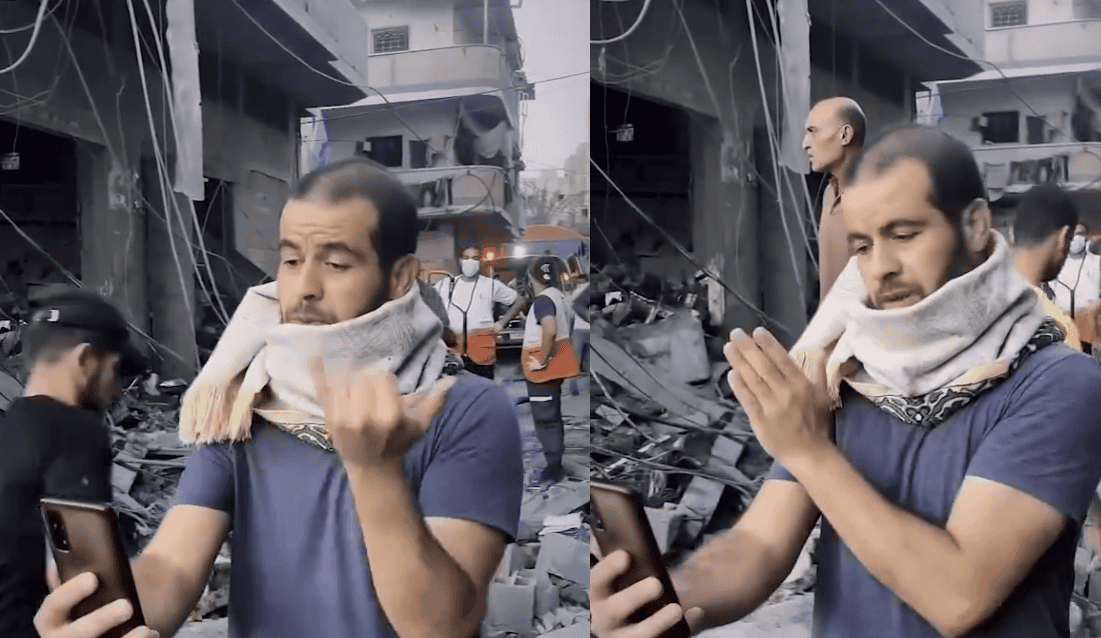 وانتشر مقطع فيديو لشاب أبكم، وهو يُجري اتصالًا مرئيًا مع شخص ما، ويُطلعه على المجازر الإسرائيلية في غزة.