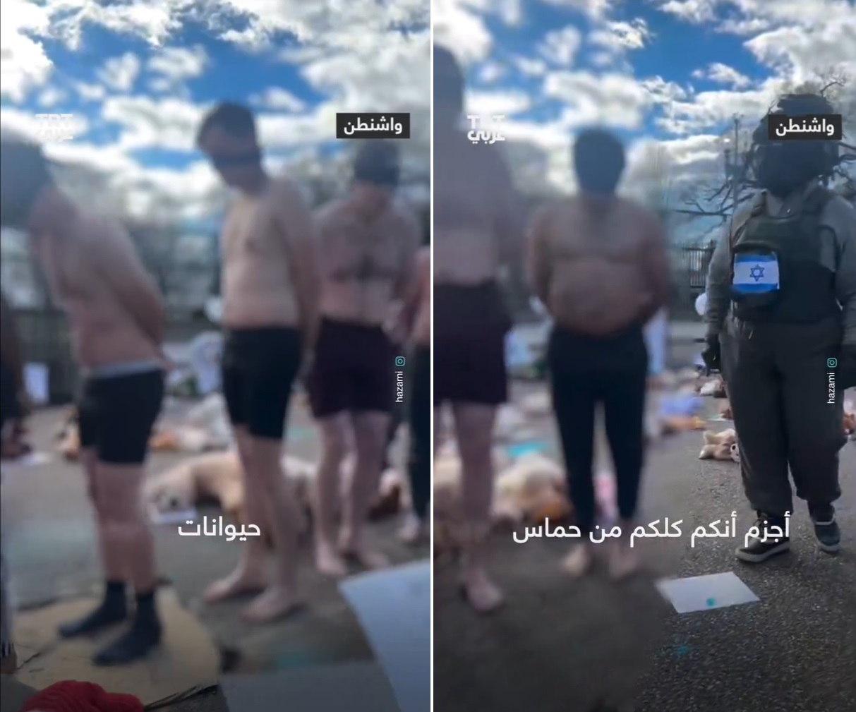 وأظهرت المقاطع جنودا من الاحتلال يقفون أمام شباب مكبلين وعراة إلا من سراويل قصيرة، بعد أن تم جمعهم في ساحة إحدى المدارس قبل اقتيادهم إلى مكان مجهول.