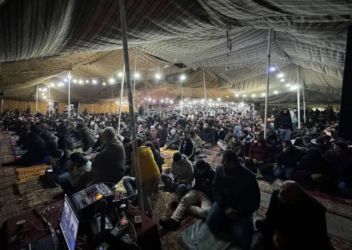 وأقام الأردنيون، صلاة القيام والقنوت في ساحة حزب جبهة العمل الإسلامي في منطقة العبدلي وسط العاصمة عمان، للدعاء لغزة وأهلها ومقاومتها.