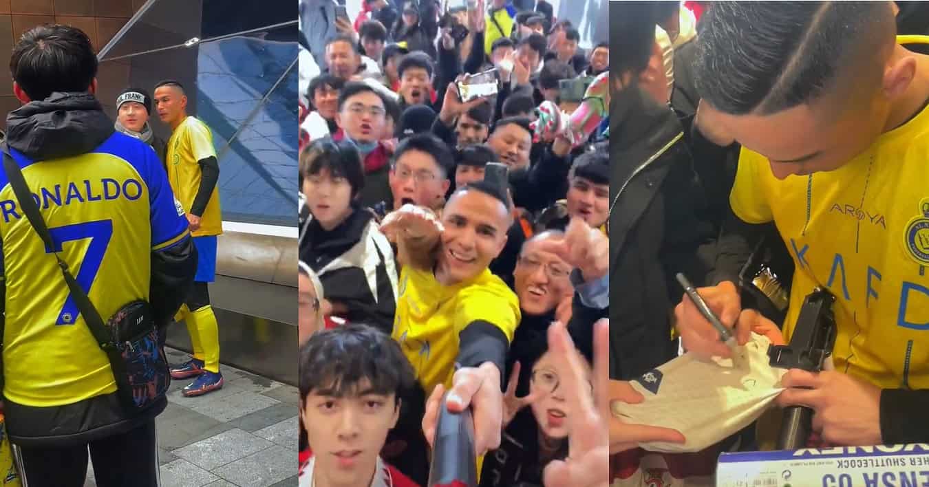 وطن – فوجئت الجماهير الصينية بشخص شبيه للنجم البرتغالي كريستيانو رونالدو، لاعب نادي النصر السعودي، يقوم بتقليده، ويوقع لهم التوقيعات.