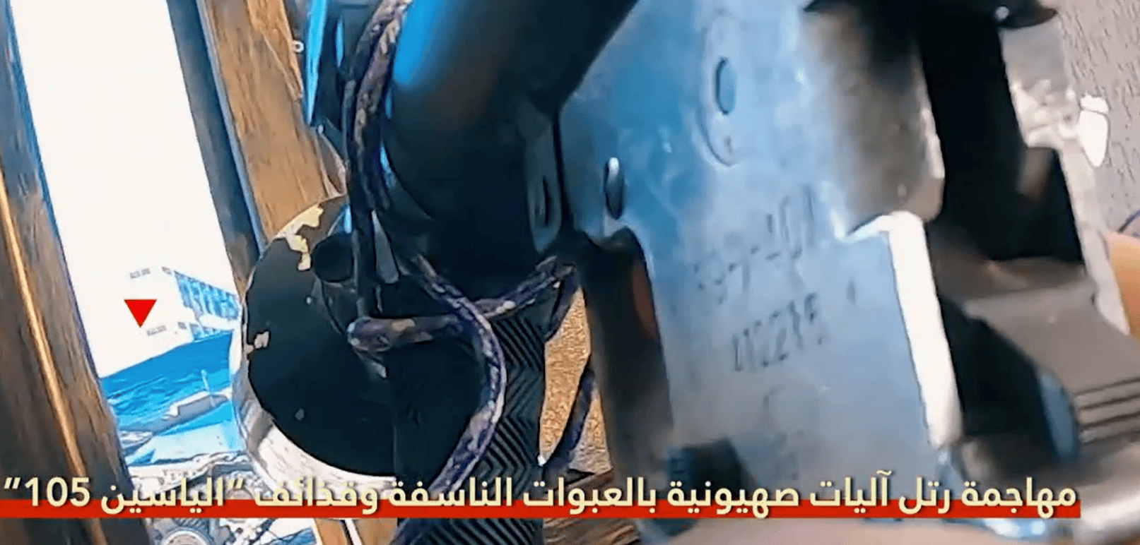 وبدا مقاوم وهو يسدد سلاحه داخل مكان بدا محل خياطة، ويتم تحديد دبابة في الشارع بالمثلث الأحمر المقلوب، وفي لحظة تتحول إلى مصير سابقتها بقذيفة الياسين 105.