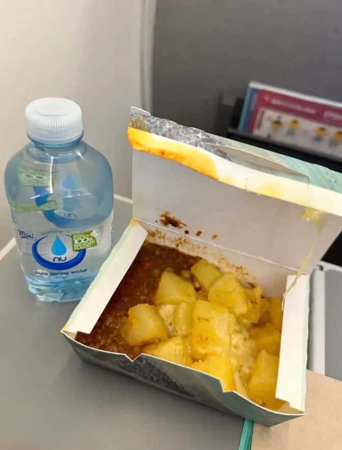 “كل ما يمكنني قوله مع تجربتي الأخيرة هو (يع)”، هكذا نشر الراكب على منتدى “ريديت – Reddit” مرفقاً صوراً لوجبتي طعام، إحداهما وجبة إفطار باهتة المظهر في صندوق رطب يحتوي على بيض وسجق وبطاطا “هاش براونز” وطماطم.
