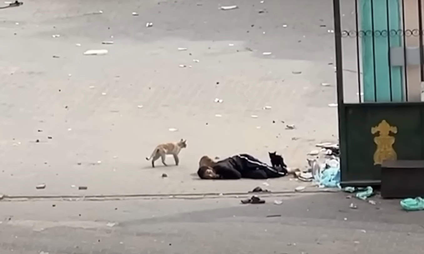 مشاهد مؤلمة لقطط تنهش جثمان طفل استشهد برصاص قناص إسرائيلي في غزة