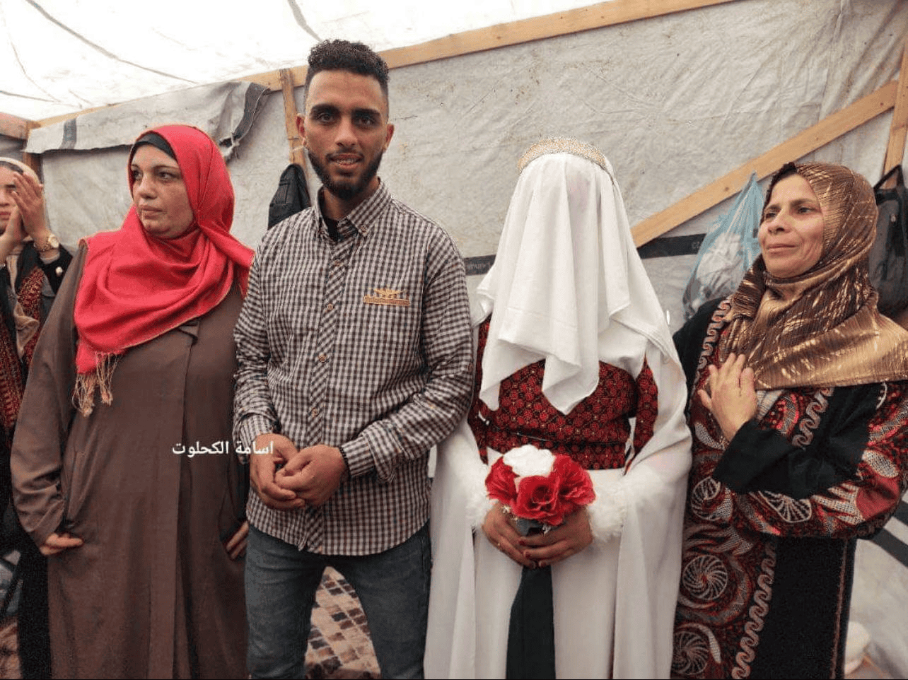 وشارك النازحون العروسين فرحتهما، وأعدّوا لهما طعام العرس، تأكيدًا لوحدة وتماسك أبناء الشعب الفلسطيني في الأفراح والأتراح.