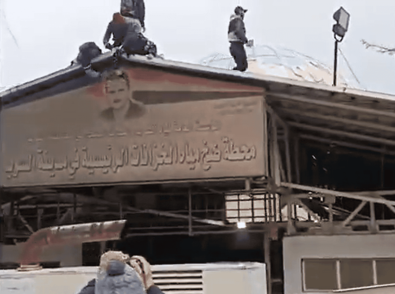 وأظهر مقطع فيديو نشره موقع “السويداء 24” عدداً من الشبان وهم يرتقون سطح مؤسسة محطة ضخ مياه الخزانات الرئيسية في مدينة السويداء، ويقومون بنزع لافتة للمؤسسة تحمل اسمها وصورة بشار الأسد وسط صيحات التشجيع والهتافات المنددة بالنظام.