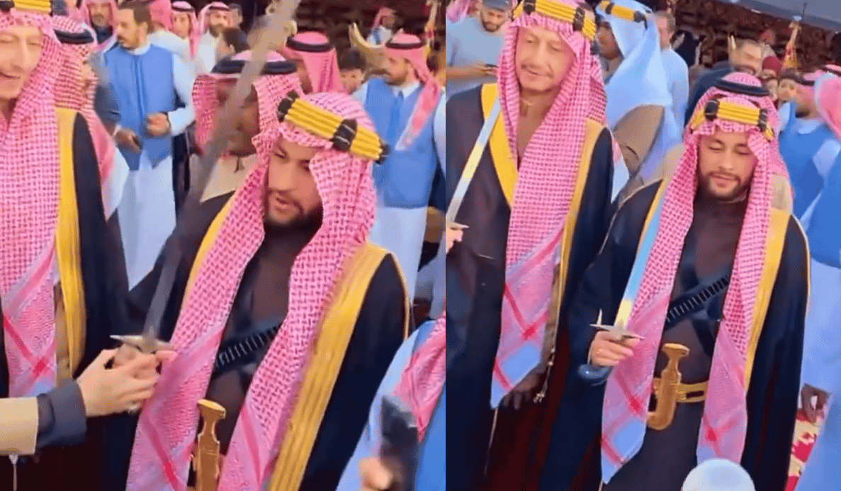 ونشر نادي الهلال عبر حسابه في موقع “إكس” مع جملة صور عن المملكة، صورة للاعب البرازيلي نيمار ومدربه إلى جانب عدد من الأشخاص وهما يرتديان الزي التقليدي السعودي.