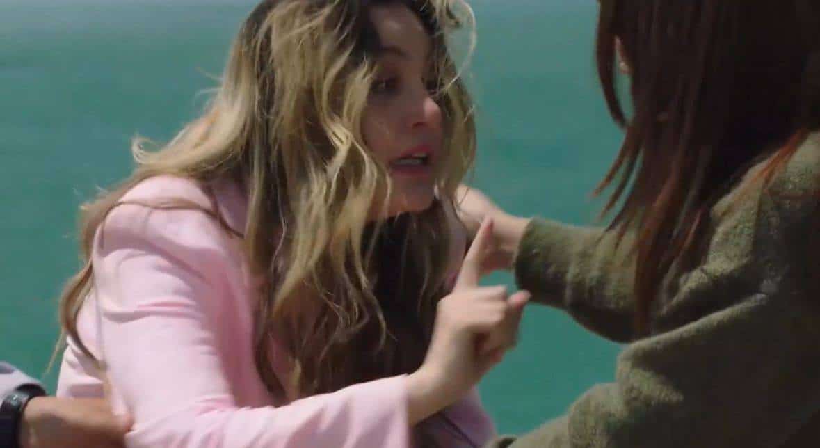 وفي الحلقة الأخيرة من مسلسل الخائن تخرج تيا التي لعبت دورها الممثلة السورية مرام علي من مستشفى التأهيل وتصر على رؤية أسيل أي الممثلة سلافة معمار ويجري حديث مؤثر بينهما لتعتذر منها كونها هي من أنقذت حياتها.