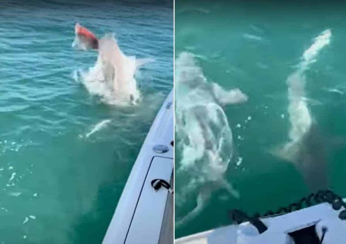 وطن – لم يتوقع الصياد جيمي غلاسنر أن يتحول صيده إلى هدف لسمكة قرش عملاقة في عرض البحر وبثت وسائل إعلام أمريكية لحظات مرعبة للهجوم المفاجئ.