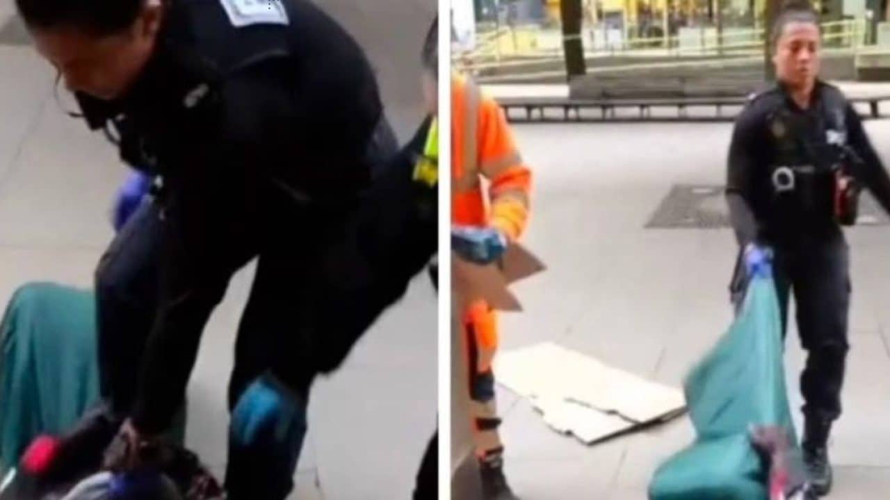 NEW: Police in Manchester say an officer’s behaviour was unacceptable and must never be repeated after video emerged of her dragging a rough sleeper across the ground and deliberately “stamping” on his stomach. pic.twitter.com/fg6ttGDzaT