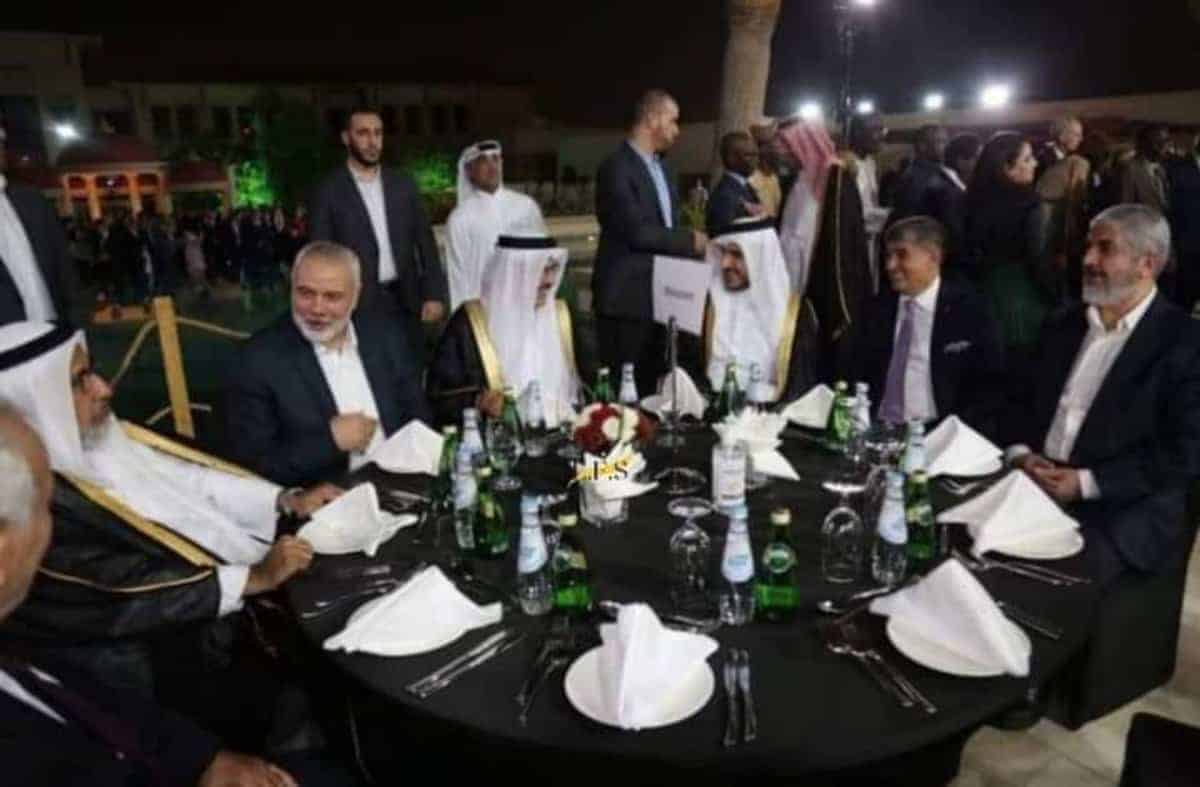 وأظهرت الصورة المزعومة، حضور رئيس المكتب السياسي لحركة حماس إسماعيل هنية، ورئيس حركة حماس في الخارج خالد مشعل لحفل الإفطار.