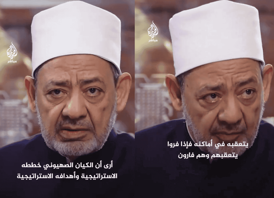 شيخ الأزهر: الكيان الصــهيوني يُريد أرض #فلسطين ليقفر منها على #سيناء ليحقق “أحلام يقظة” pic.twitter.com/FwsMUQqtso