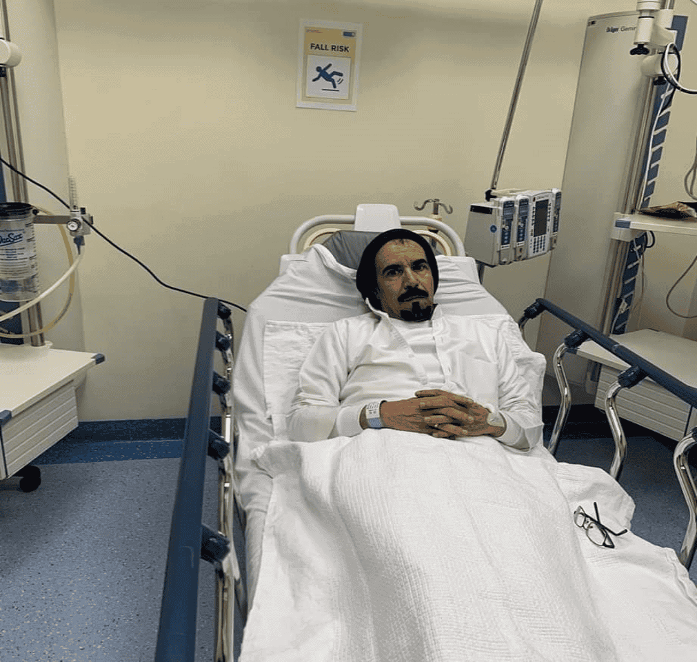 وظهر رواف السعين في صور نشرها على سرير المرض في المستشفى ويبدو أنه يعاني من أزمة صحية كبيرة.