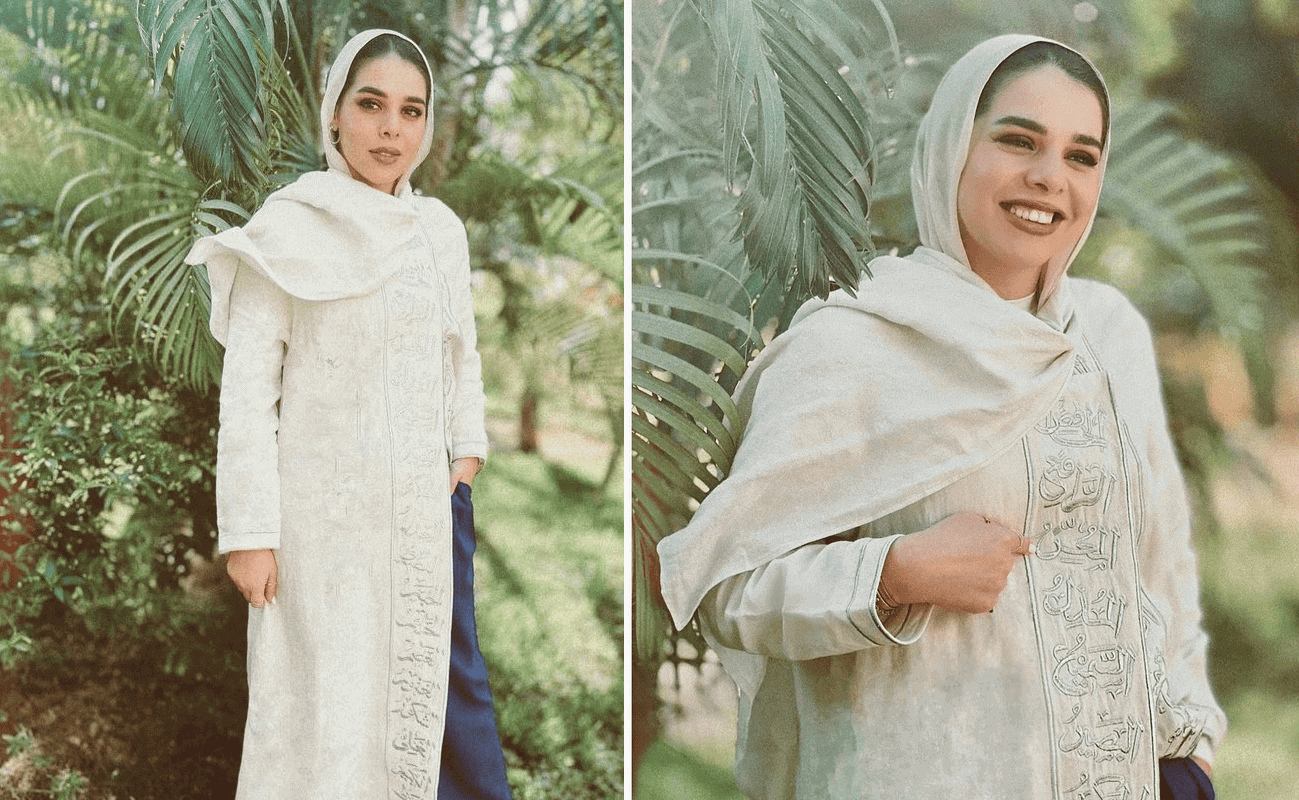 آية السيسي في أحدث ظهور لها ارتدت ثوبا مطرزا بـ 99 اسما من أسماء الله الحسنى، وبدت مبتسمة في الصور، وهي تشير إلى اسم الله “المعز” لكن انتقادات لاذعة طالتها بسبب عدم احترامها لأقدس الأسماء واستفزازها الشعب بفستانها الفاره.