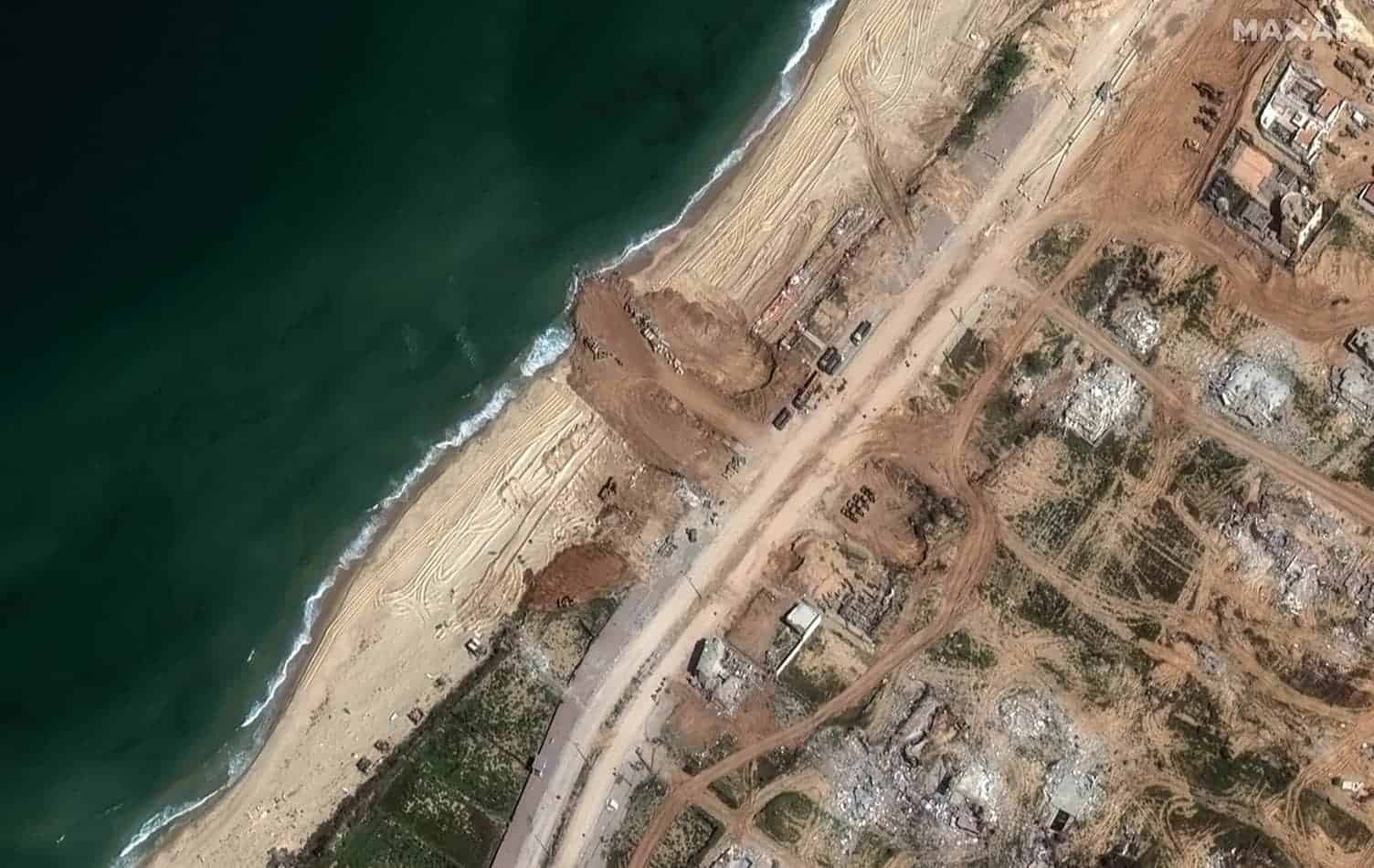 أظهرت صور التقطت عبر الأقمار الصناعية رصيفاً قيد الإنشاء على شواطئ الساحل الجنوبي لمدينة غزة، وفق الإحداثيات التي نشرتها شركة “ماكسار” للتكنولوجيا.