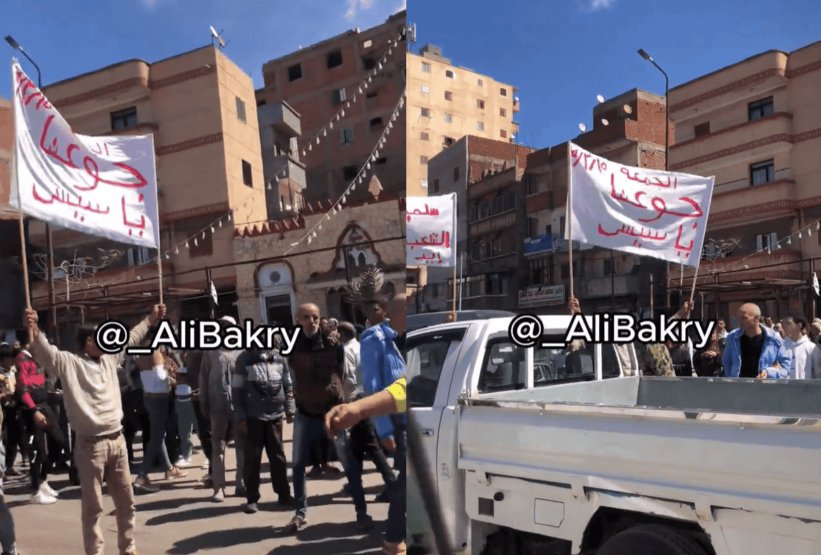وأمس الجمعة، أظهرت لقطات مصورة عشرات المصريين في تظاهرة نادرة بالإسكندرية ضد النظام المصري وقد رفعوا لافتة كبيرة بتاريخ 15 مارس 2024، حملت شعار “جوعتنا يا سيسي” لتدور تساؤلات عن إمكانية بدء ثورة جياع كبيرة في مصر.