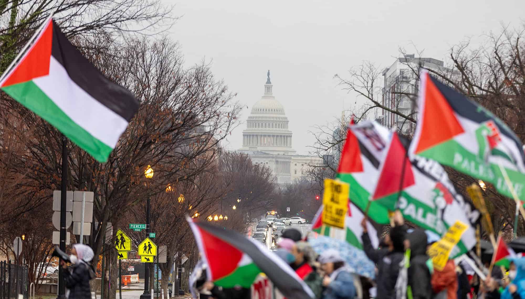 كما أثارت الحرب على غزة ردود فعل كبيرة داخل الولايات المتحدة، حيث جرت مسيرات حاشدة مؤيدة للفلسطينيين بانتظام في جميع أنحاء البلاد وفي المدن الكبرى.